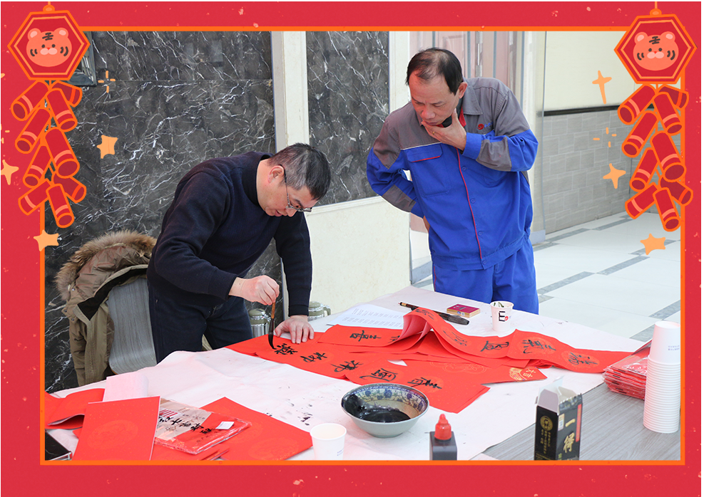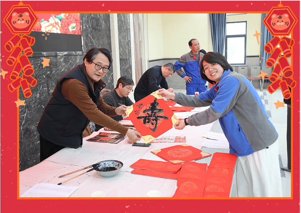 靈蛇迎歲,新元肇始。1月23日上午,九三學(xué)社湖州市委的書法家們來到永興,為公司員工送上新春的祝福。他們筆力遒勁,揮毫潑墨,筆觸間蘊(yùn)含著深厚的文化底蘊(yùn)與新春的吉祥氣息。現(xiàn)場氣氛活躍,書法家們根據(jù)員工的個性需求精心創(chuàng)作,員工們紛紛排隊(duì)領(lǐng)取,一幅幅獨(dú)具匠心的春聯(lián)帶著濃濃的溫情和祝福。隨著書法作品一一完成,墨香撲鼻,員工們感受到新春的喜悅和九三學(xué)社的深情厚意。這一場書法贈春的活動,不僅讓大家感受到傳統(tǒng)文化的魅力,也增添了新春佳節(jié)的喜慶氛圍。